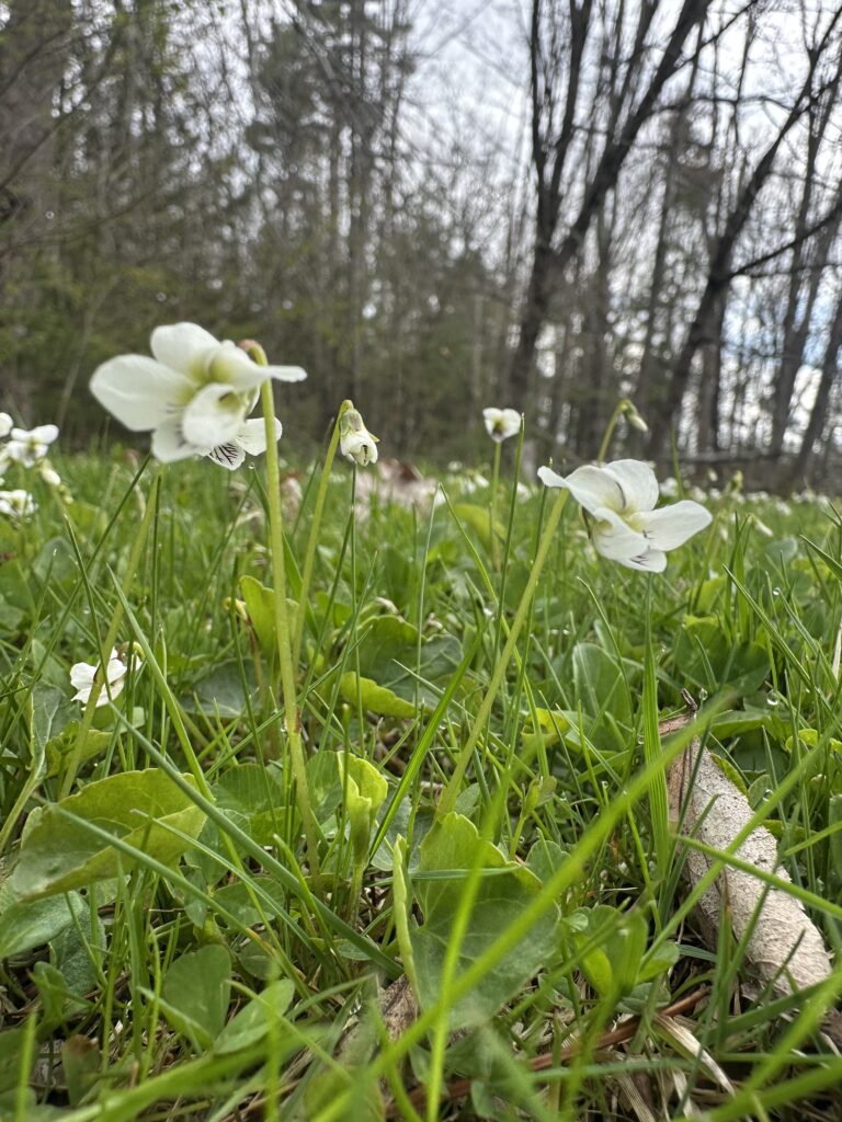 At our April field trip, we were scheduled to observe vernal pools in the area, but the temps were still so low the pools were not active. The leaders improvised and created several opportunities for us, so on May 3rd, I joined a field trip at Mayor Baxter Woods in Portland. We saw salamander egg masses, tadpoles, two peepers, spermatophores, a Red-backed Salamander, an Eastern Painted Turtle, and wildflowers, such as violets and trout lilies.